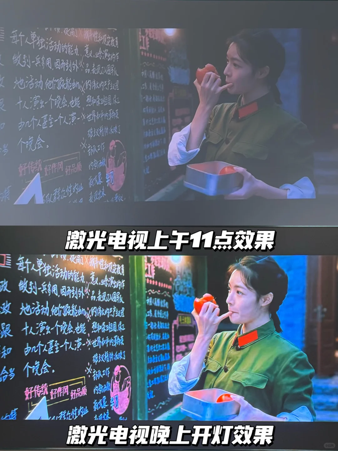 在黑暗的环境中,画质虽然可以媲美液晶电视机,但长时间在黑暗的环境中追剧看电视,会对视力造成不可逆转的伤害。